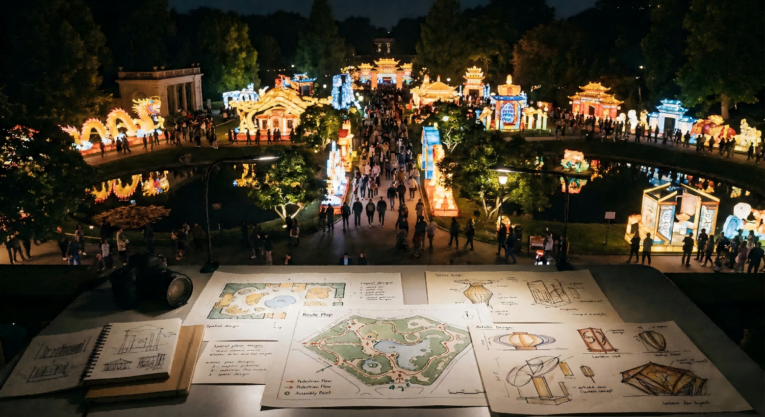 A lantern show is experienced in motion. Visitors do not absorb it all at once. They walk through it, pause, take photographs, adjust to changing light levels, and respond to how one scene leads into the next. Because of this, route planning is one of the most important parts of the whole project.